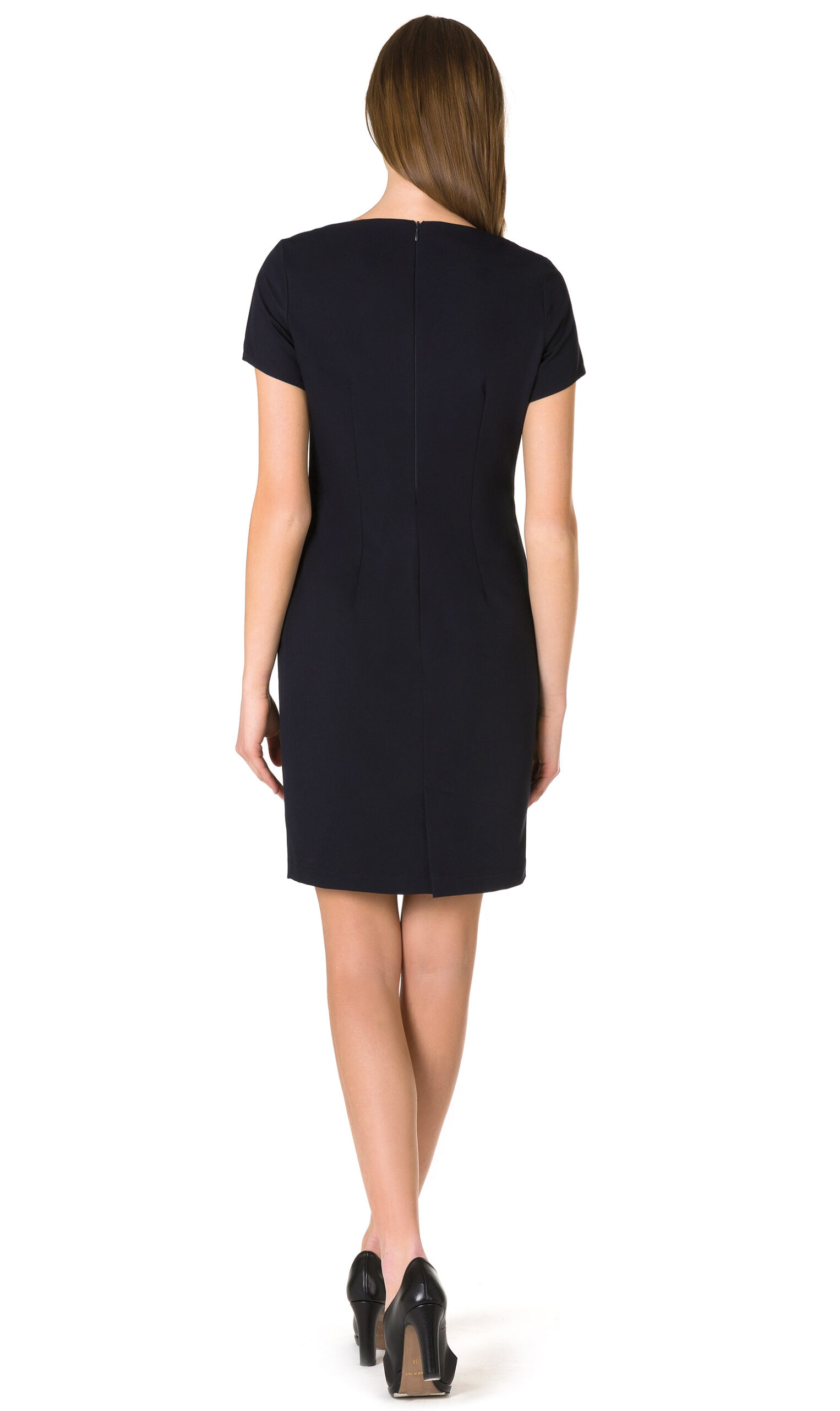 In 97% poliestere 3% elast. 220gr/mq, Mezza Manica, in tinta unita, scollo a barchetta e cerniera posteriore.