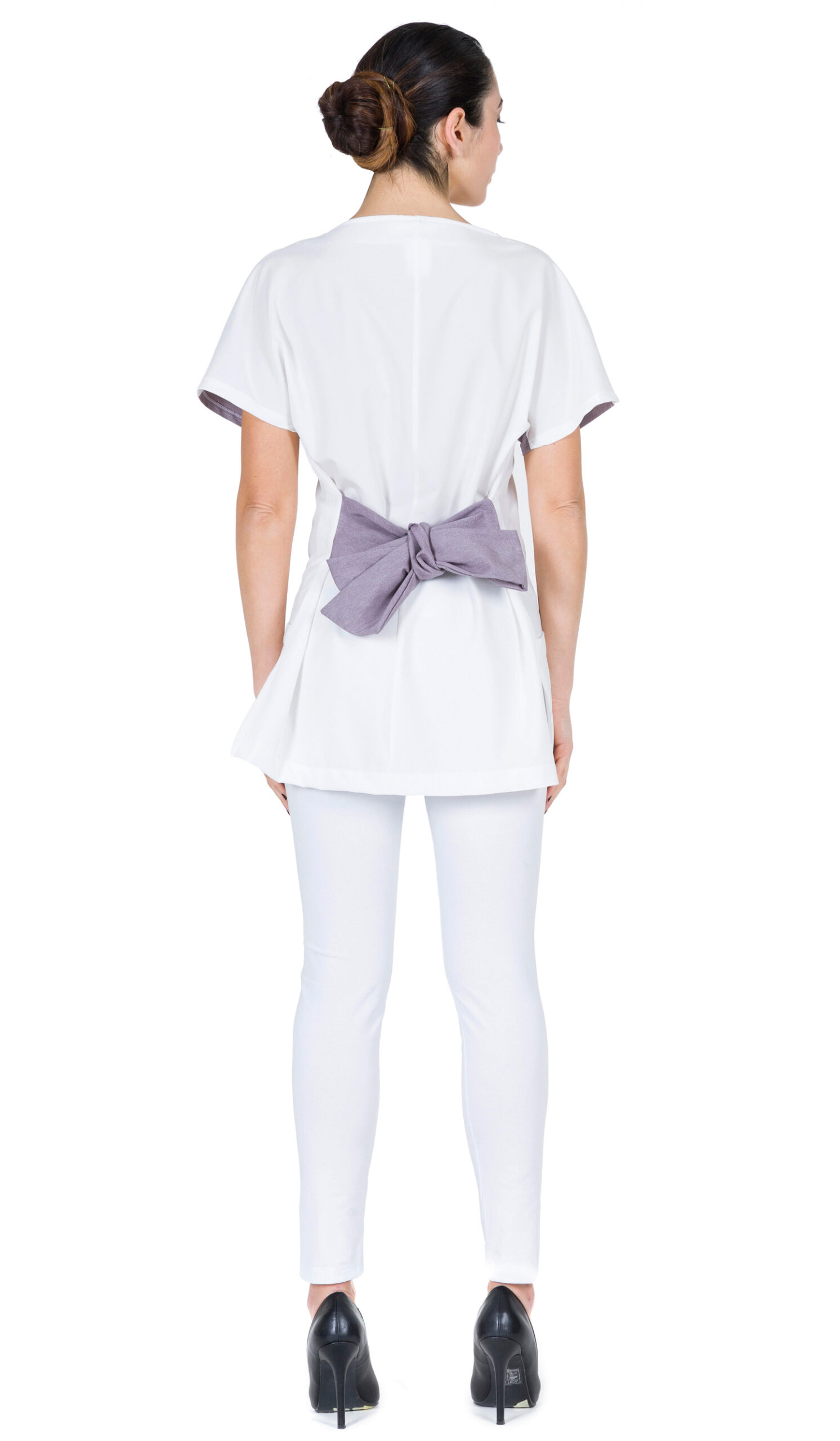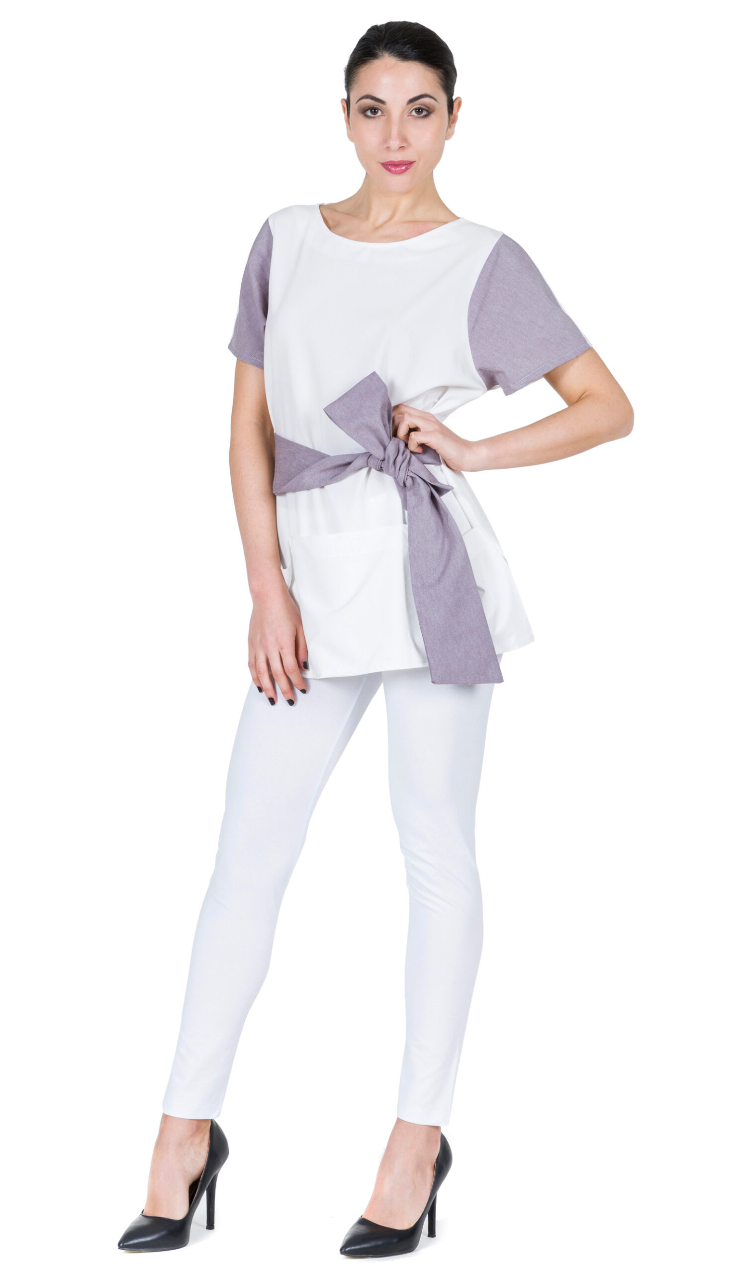 In 100%PL Microfibra, casacca girocollo particolari bicolore alle maniche e fusciacca cucita in vita, due tasche a toppa.
