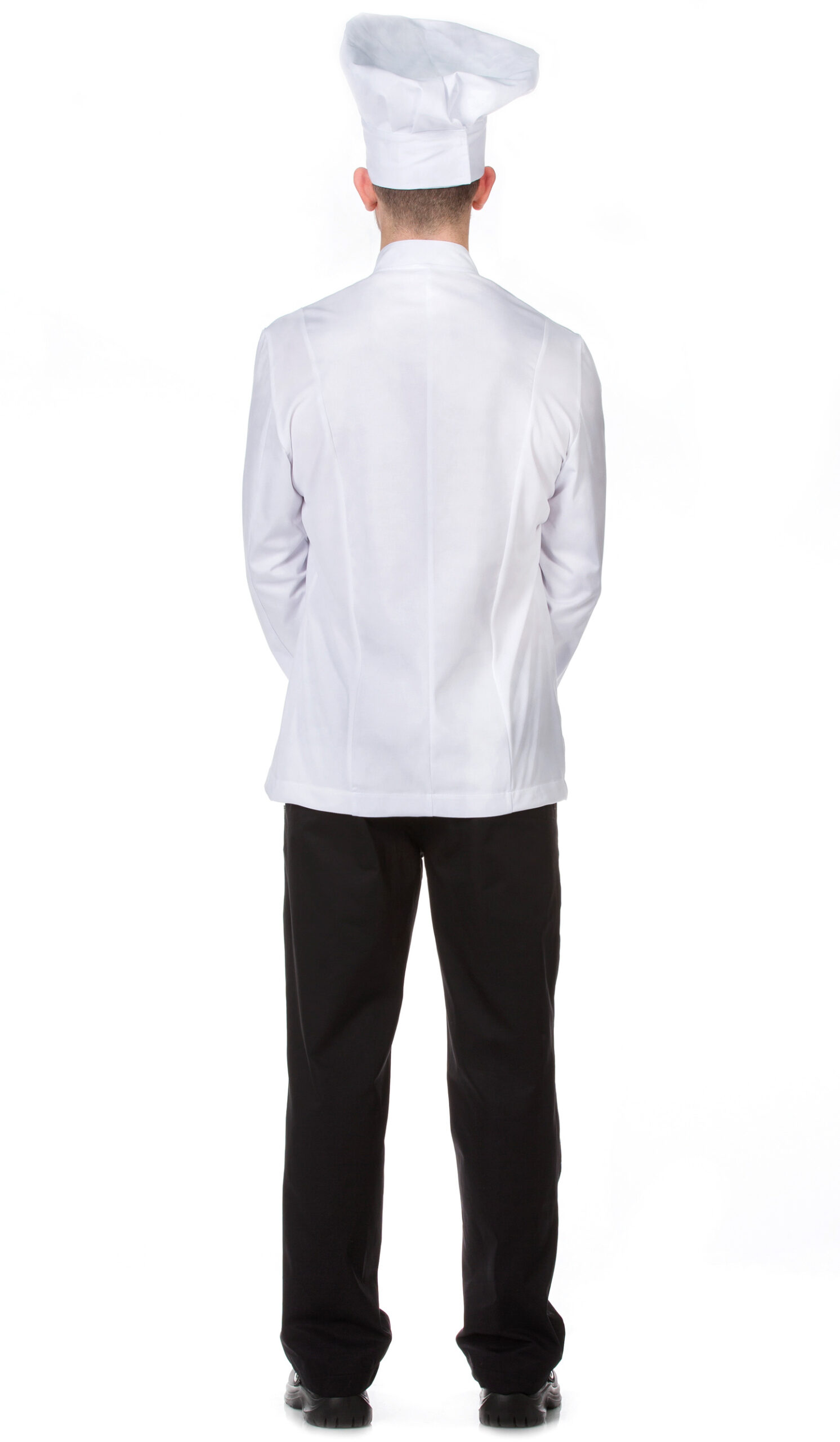 In gabardine 100% cotone – 190 gr/mq con fianchetti posteriori rete VAPOREX, taschino manica Sx, Manica Lunga, collo coreana e vestibilità slim.