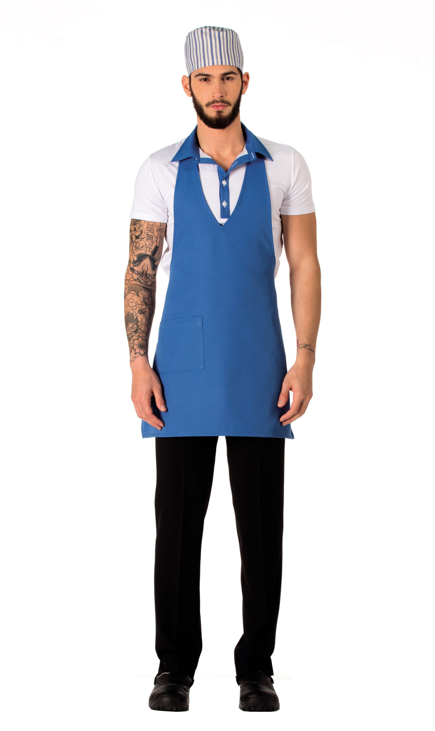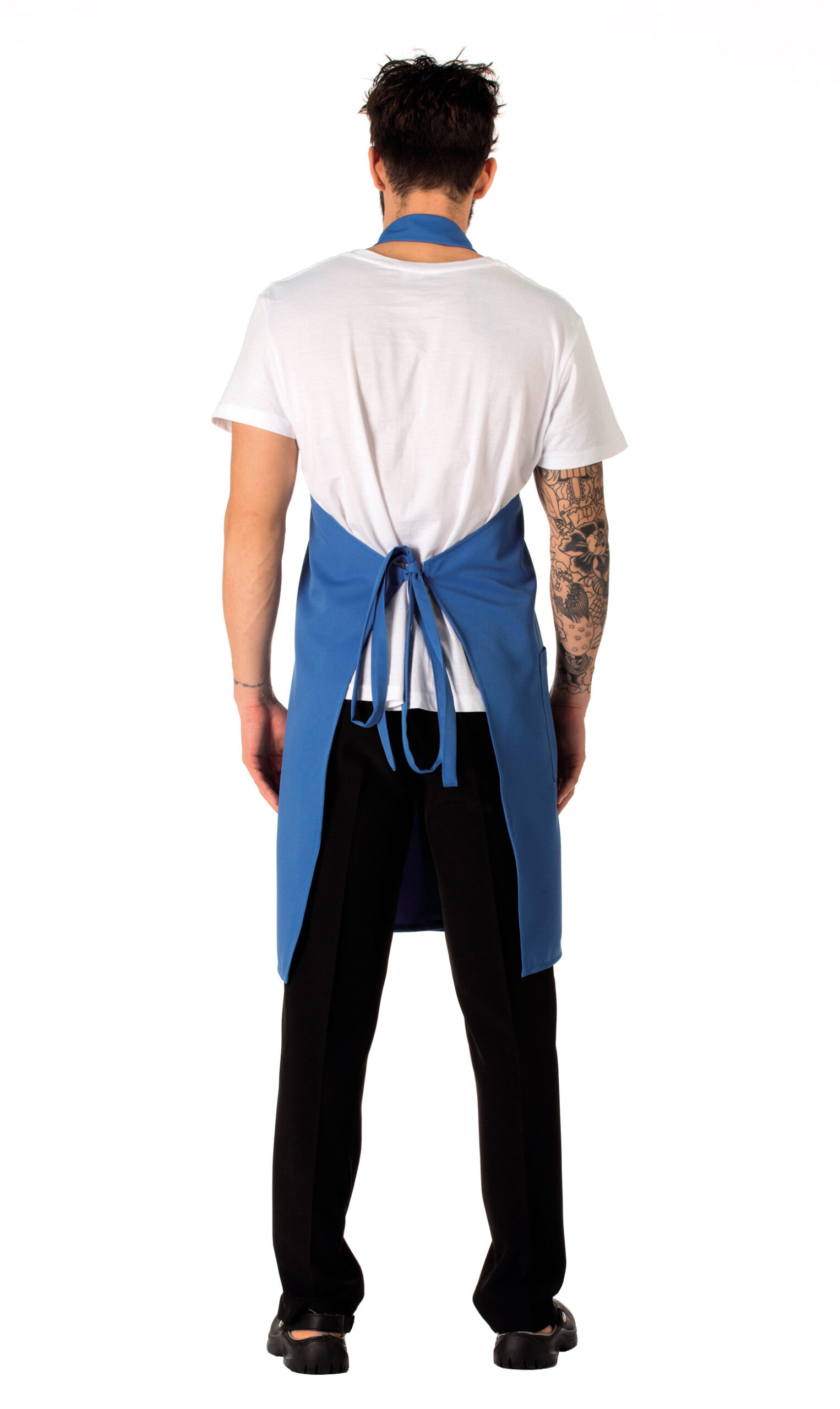 In 100% poliestere, peso 330 gr/mq., tasca a Dx, lunghezza cm 83, larghezza cm 70, allacciato sul collo con tre bottoni