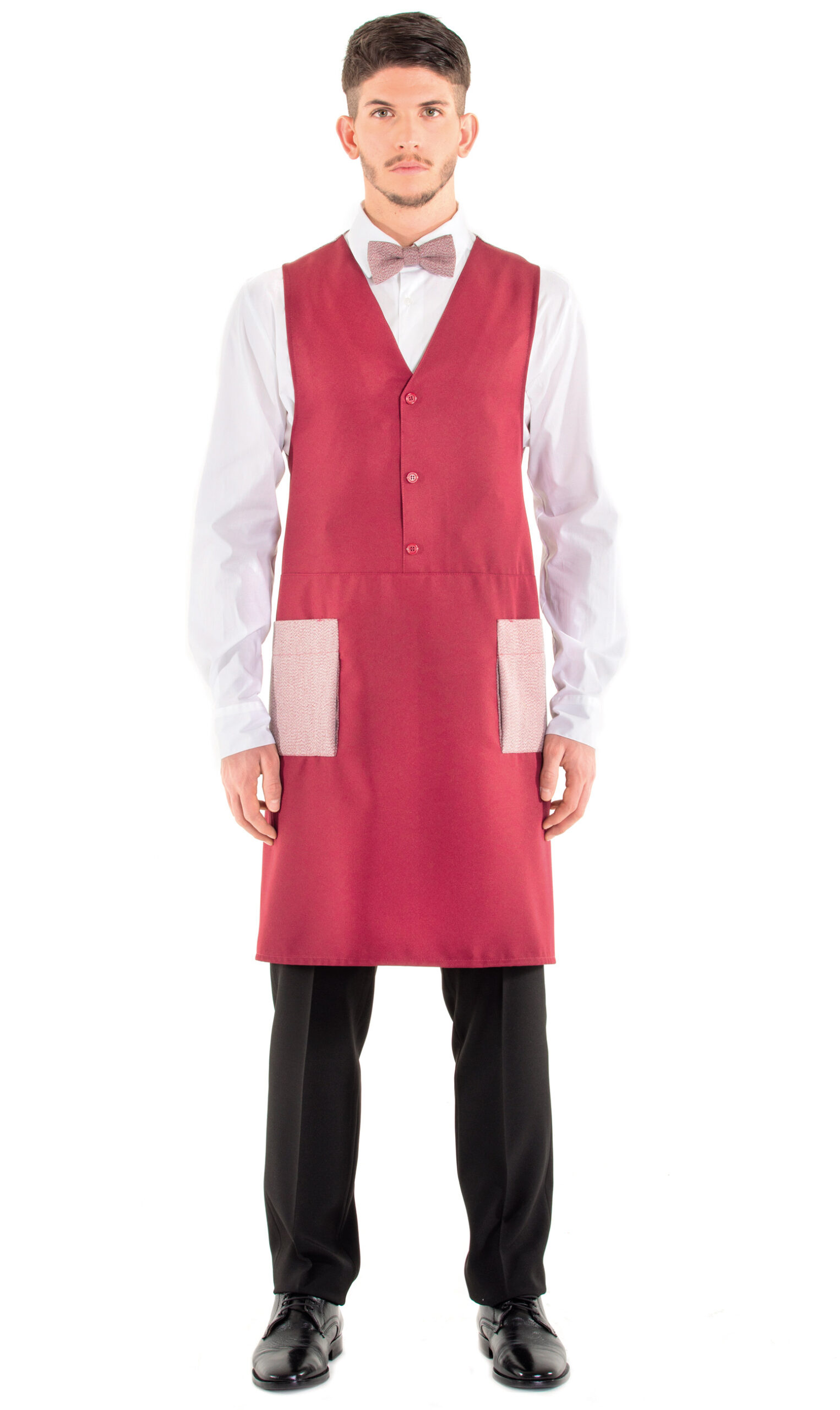 In 100% poliestere peso 330 gr/mq. larg cm 70 x alt cm 100, scollo “V” con bottoni cuciti, mezza schiena e due tasche a toppa