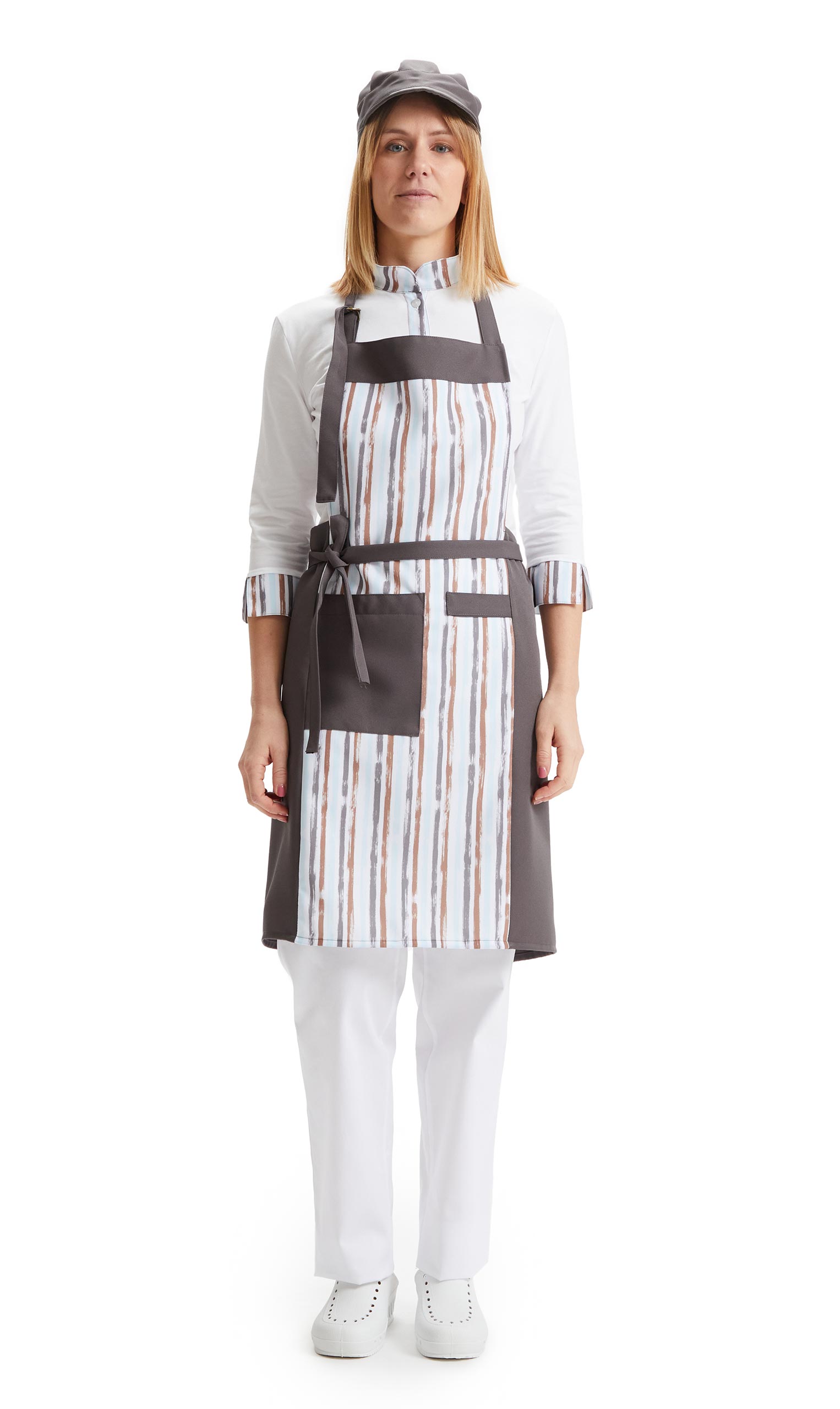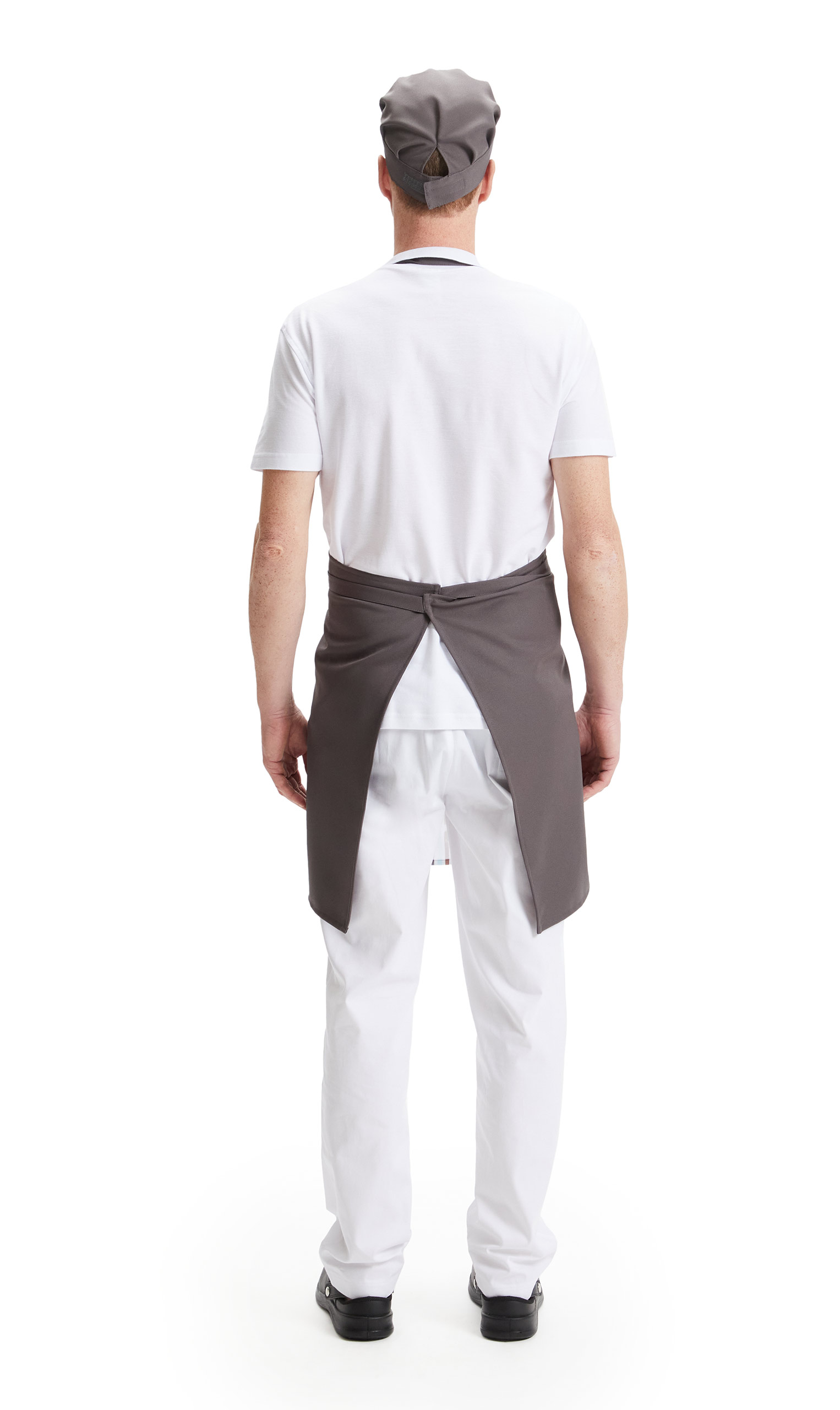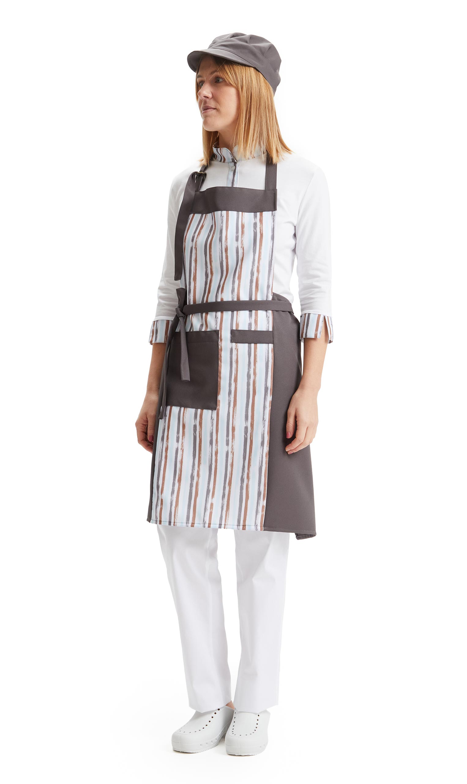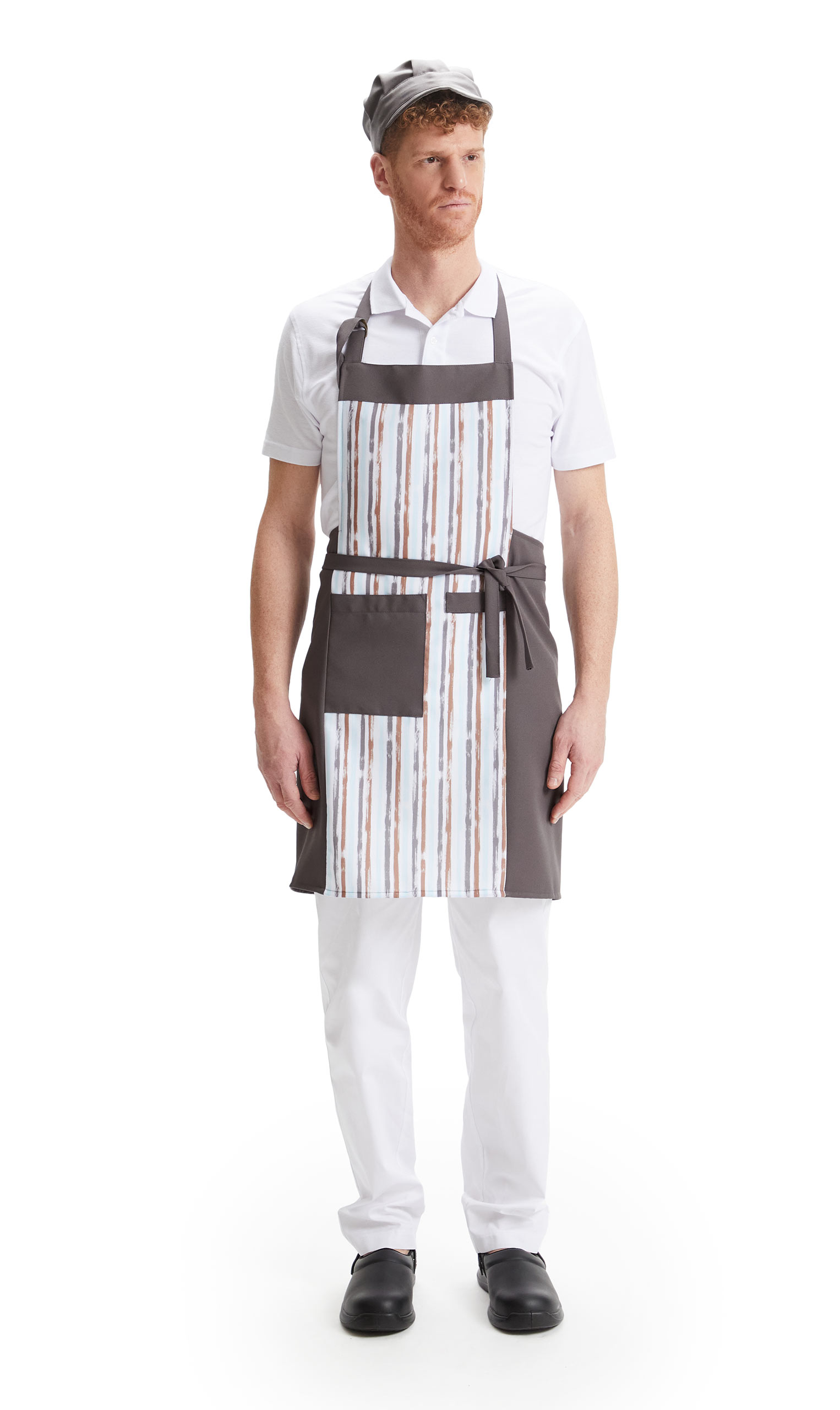 In 100% poliestere, peso 330 gr/mq., larg.98 X alt.82, bicolore, pettorina quadrata con fibbia regolazione, una tasca laterale, passante portastrofinaccio