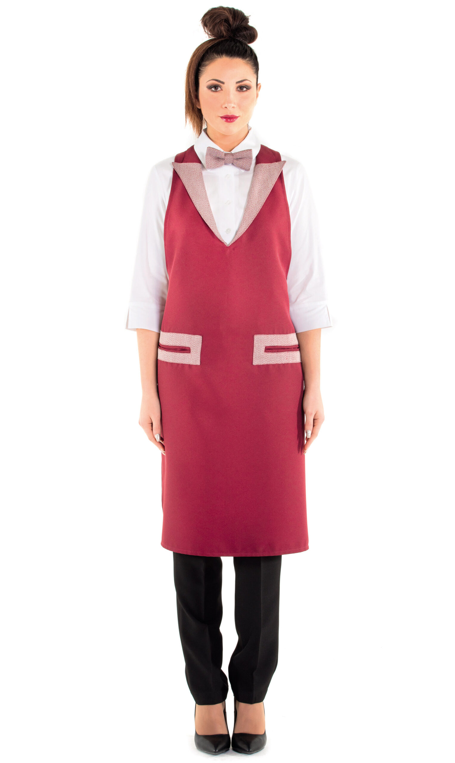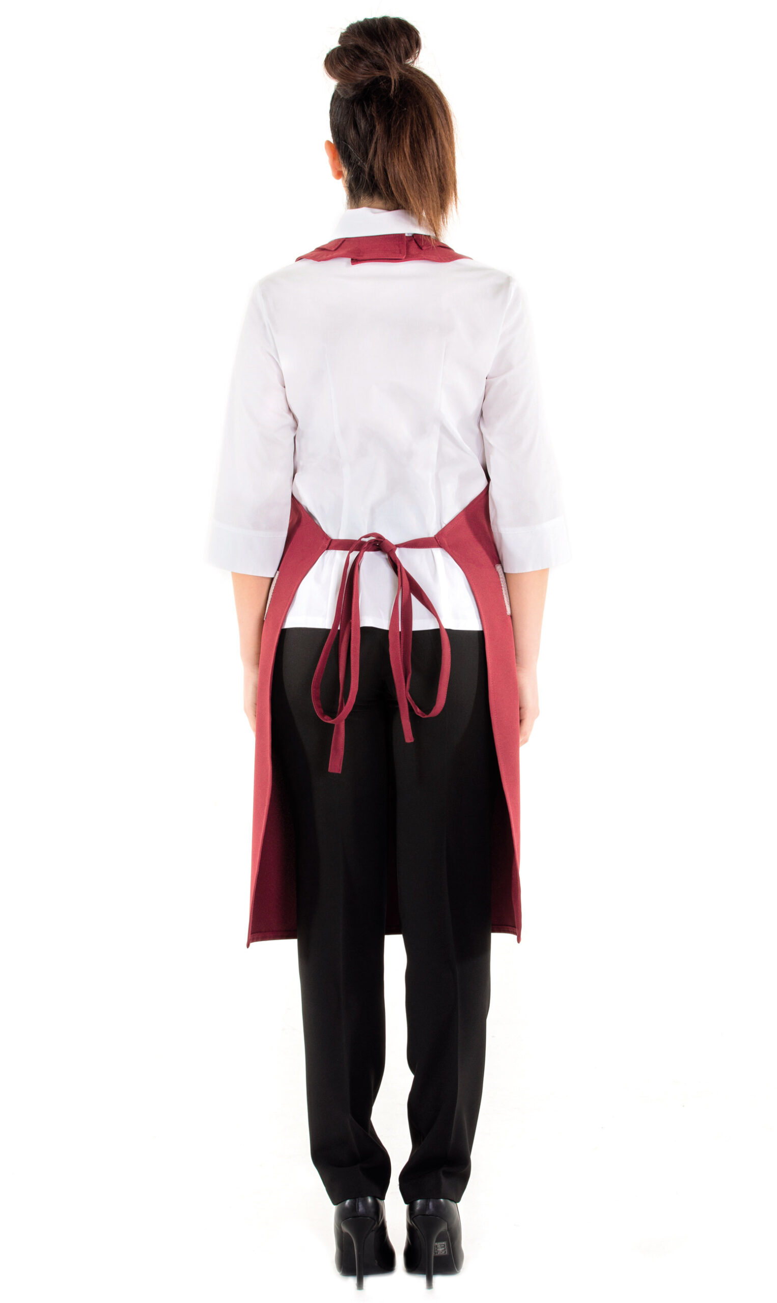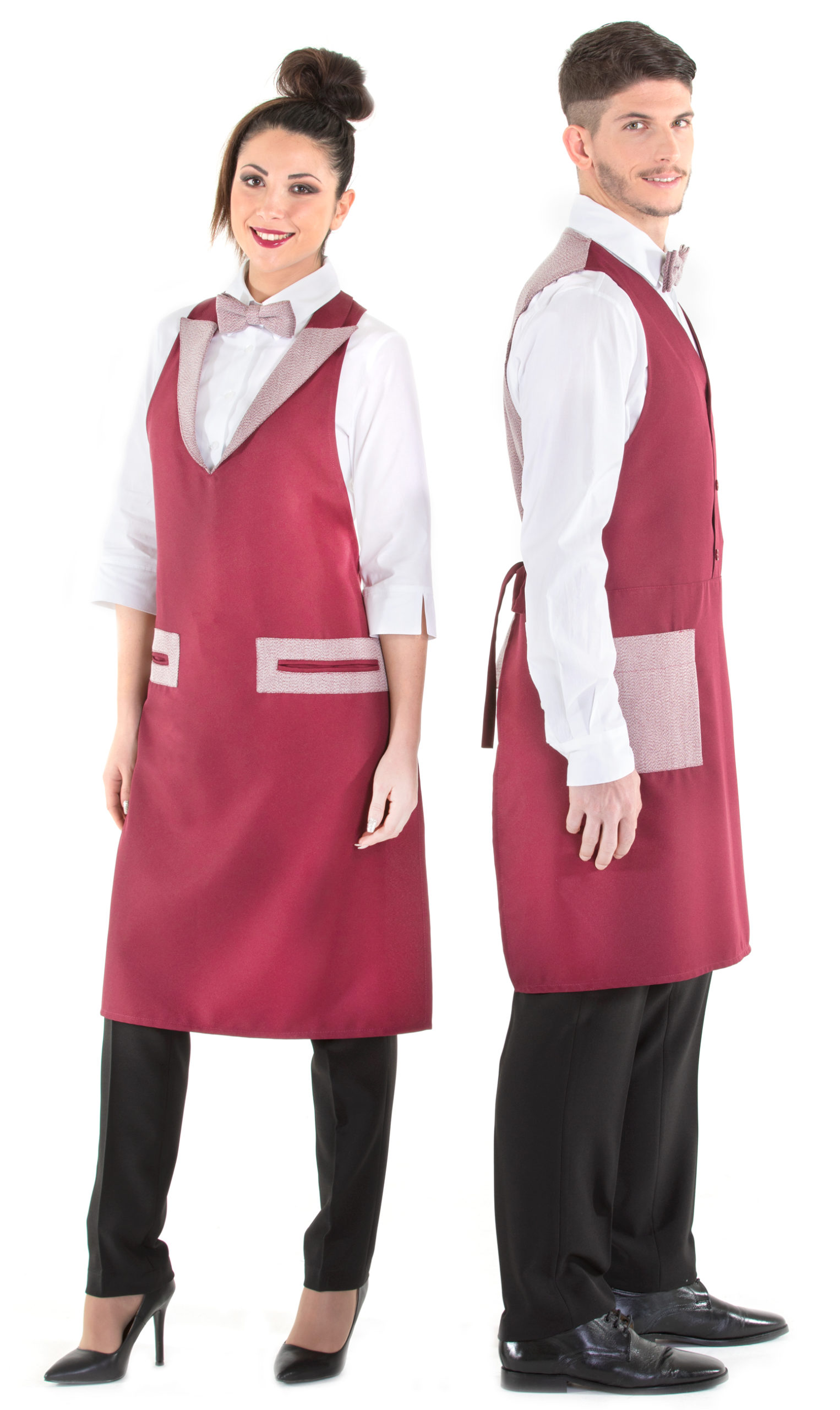 In 100% poliestere peso 330 gr/mq., larg cm 70 x alt cm 110 scollo “V” con stola e tasche filetto, allacciatura al collo con velcro