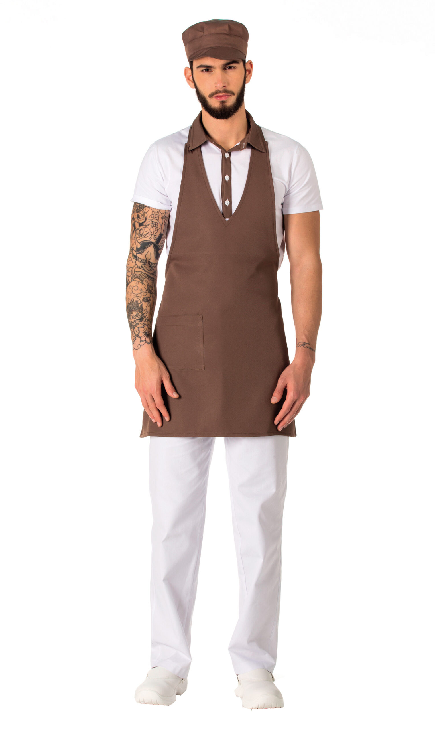 In 100% poliestere, peso 330 gr/mq., tasca a Dx, lunghezza cm 83, larghezza cm 70, allacciato sul collo con tre bottoni
