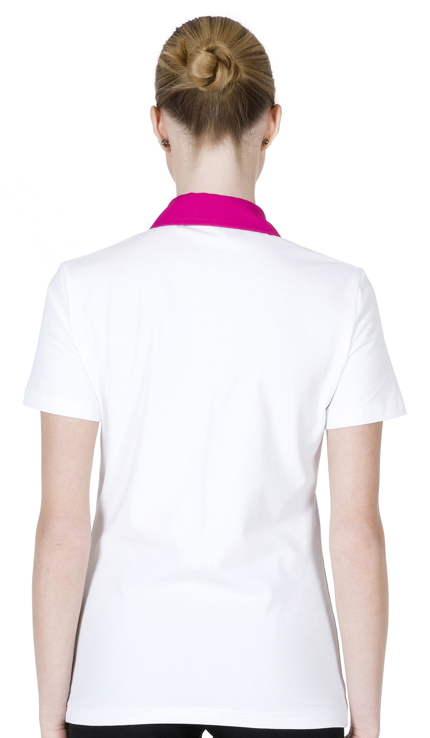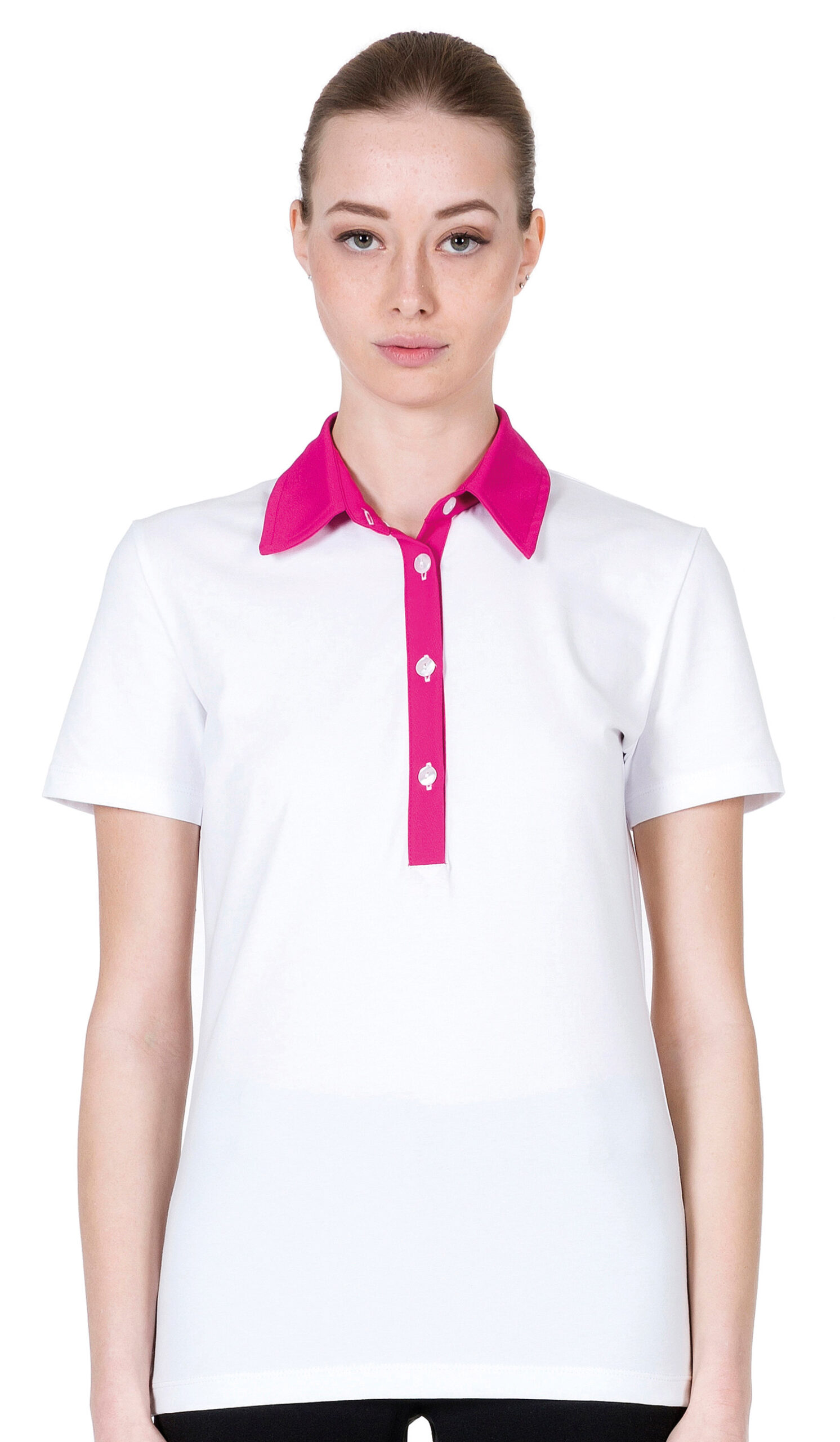 In 100% Jersey cotone/elast. Manica Corta, collo a camicia e apertura in contrasto