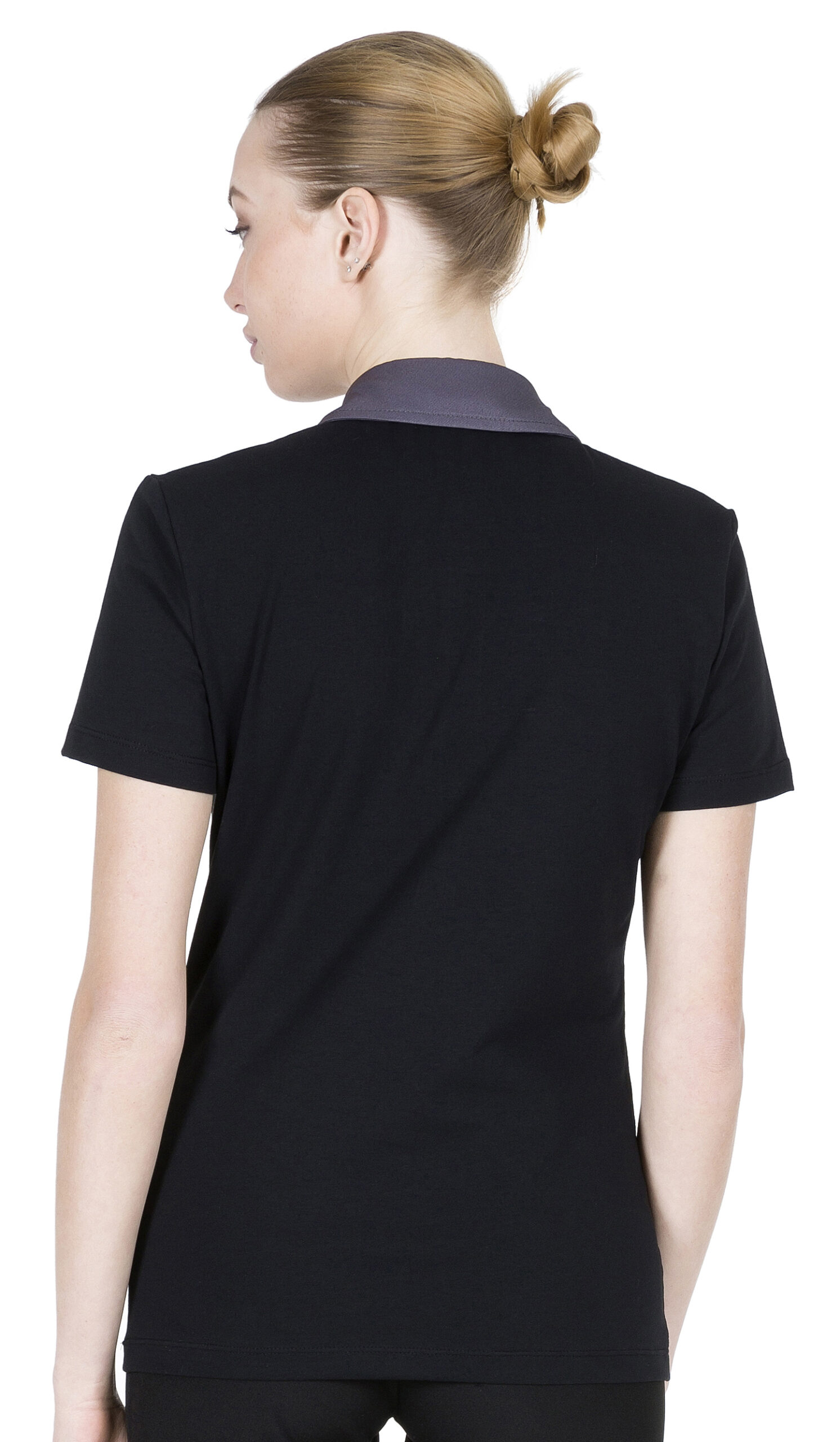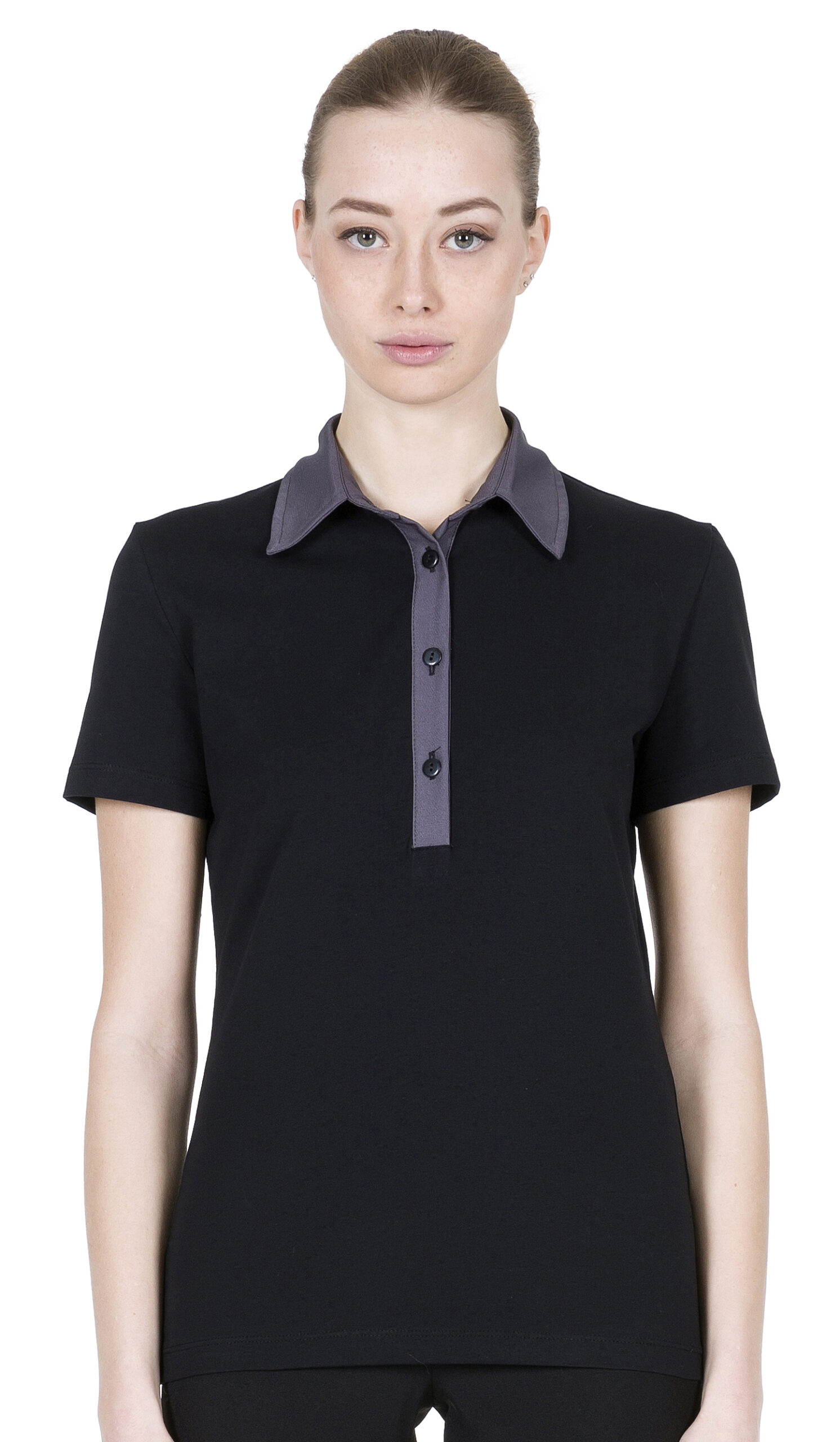 In 100% Jersey cotone/elast. Manica Corta, collo a camicia e apertura in contrasto