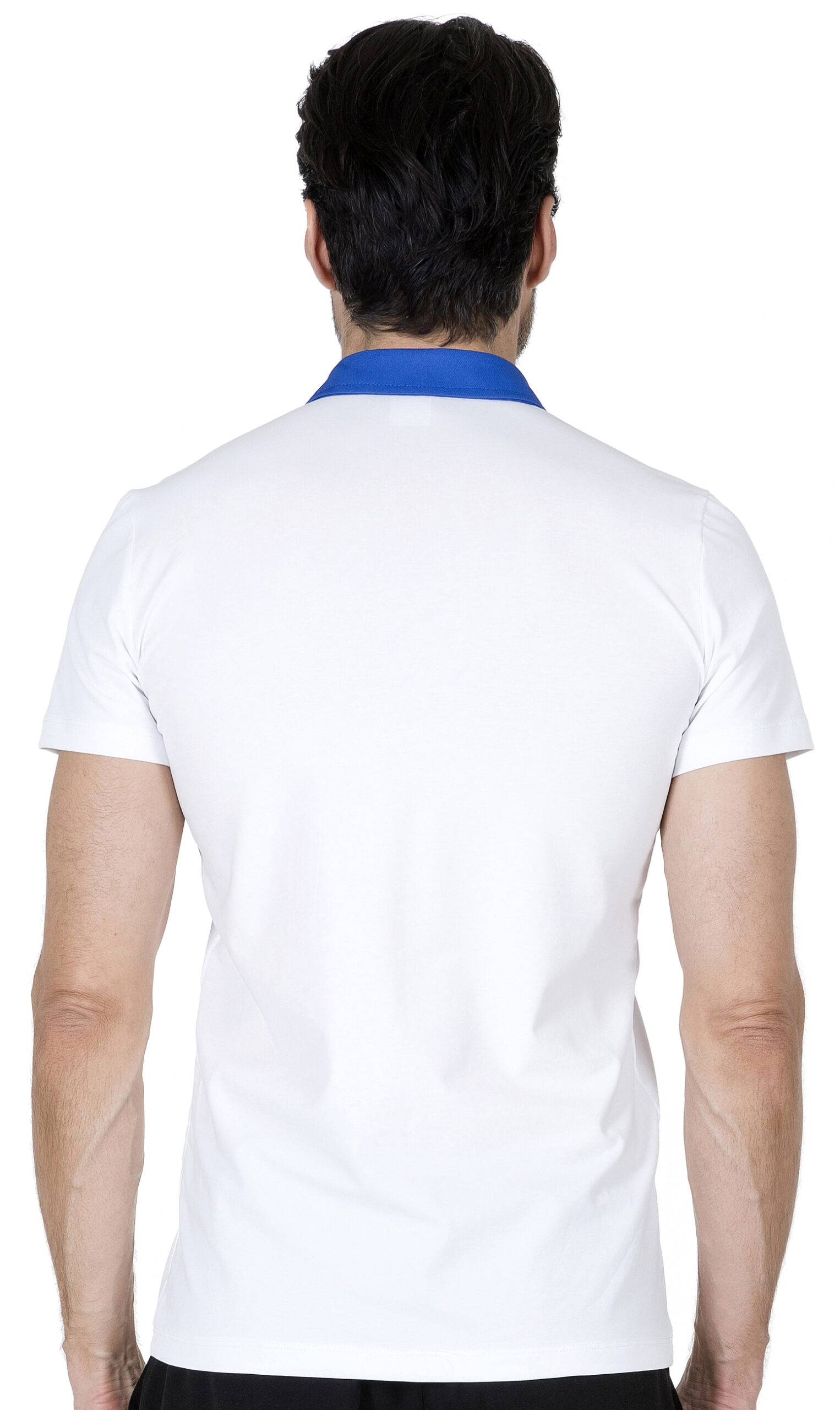In 100% Jersey cotone/elast. Manica Corta, collo a camicia e apertura in contrasto