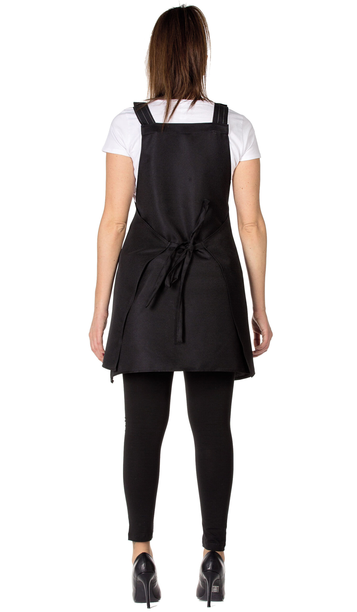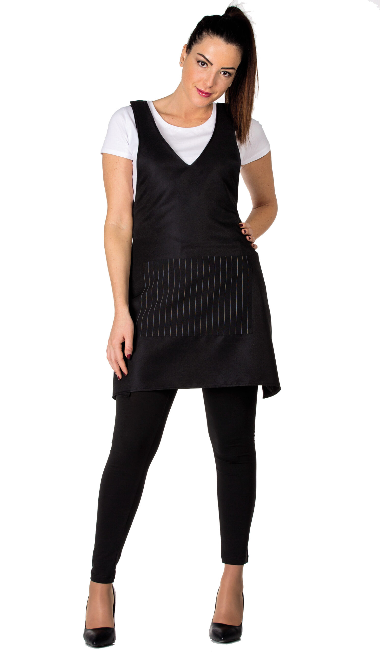 In 100% poliestere 330gr/mq, scollo a “V”, spalline regolabili con velcro, tascone centrale diviso in due in contrasto colore e allacciatura sormontata davanti e dietro.