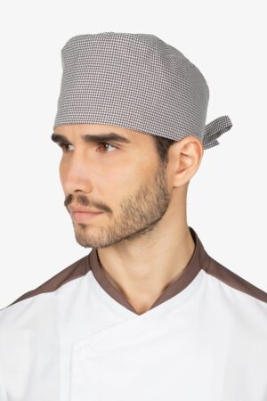 Fascia in riga beige per capelli regolabile.