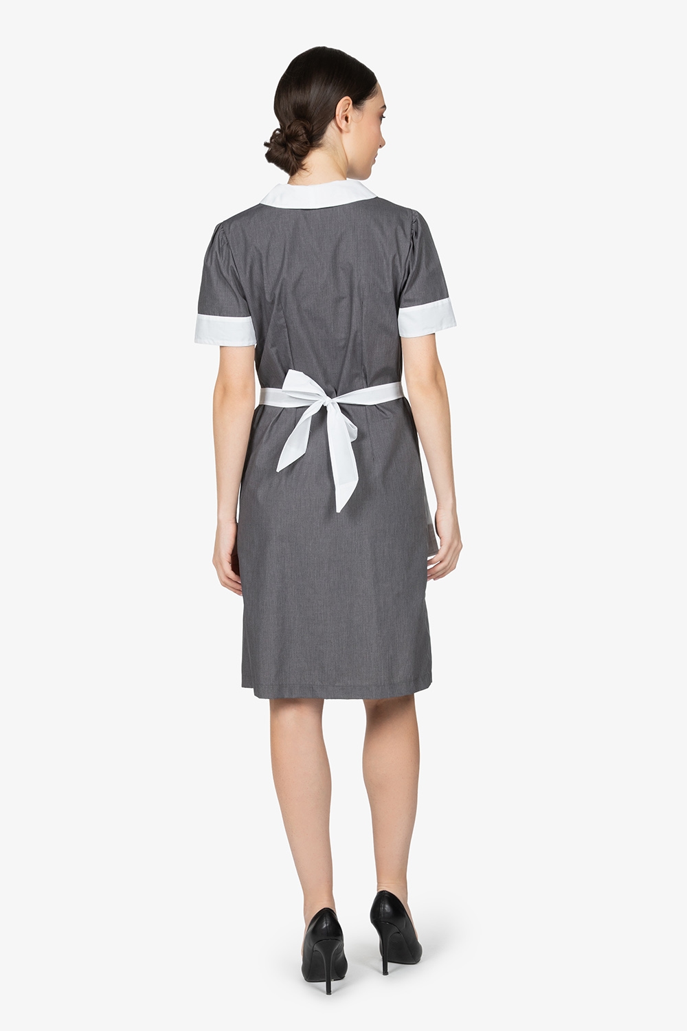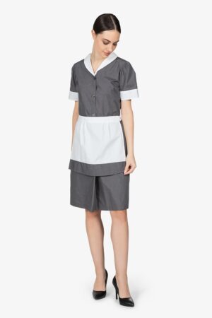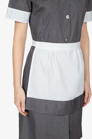 Grembiule a vita con bordo grigio in contrasto. Senza tasche. Larghezza: 70cm – Altezza: 40cm