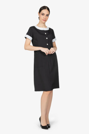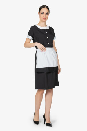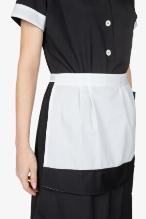 Grembiule a vita con bordo nero in contrasto. Senza tasche. Larghezza: 70cm – Altezza: 40cm
