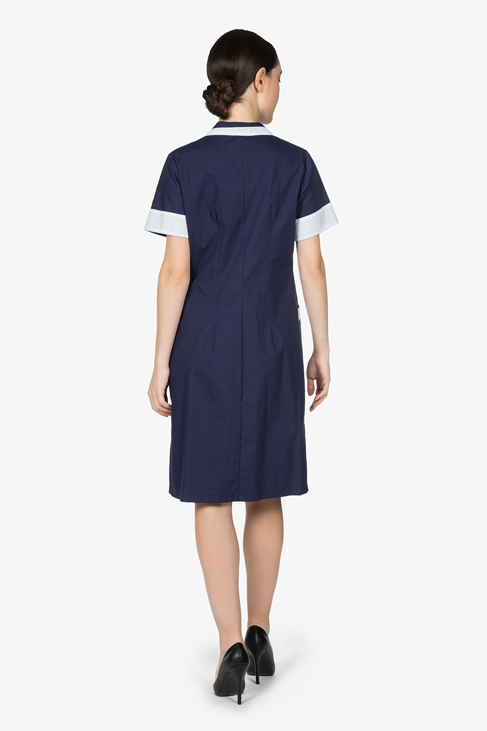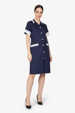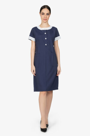 Camice ai piani, in blu, con dettagli in contrasto colore. Collo rever. 2 tasche a toppa sul davanti. Chiusura centrale con bottoni in contrasto colore. Vestibilità regular.