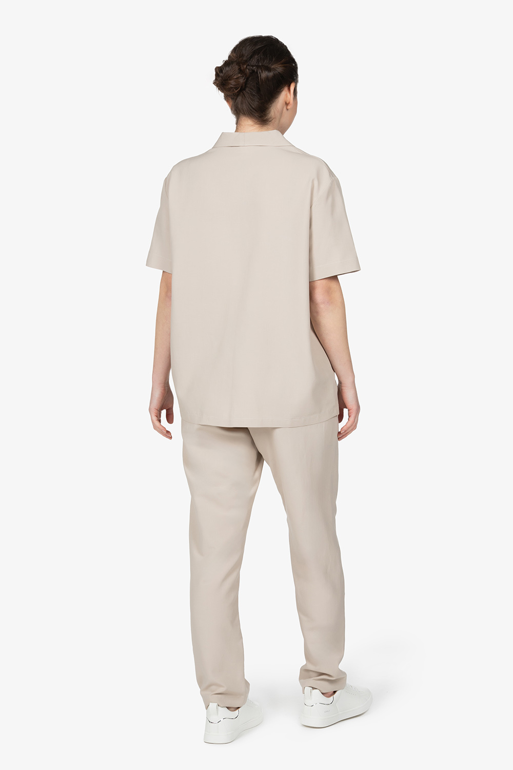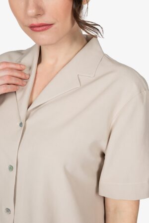 Camicia con collo rever, in colore gesso. Mezza manica. Vestibilità regular.