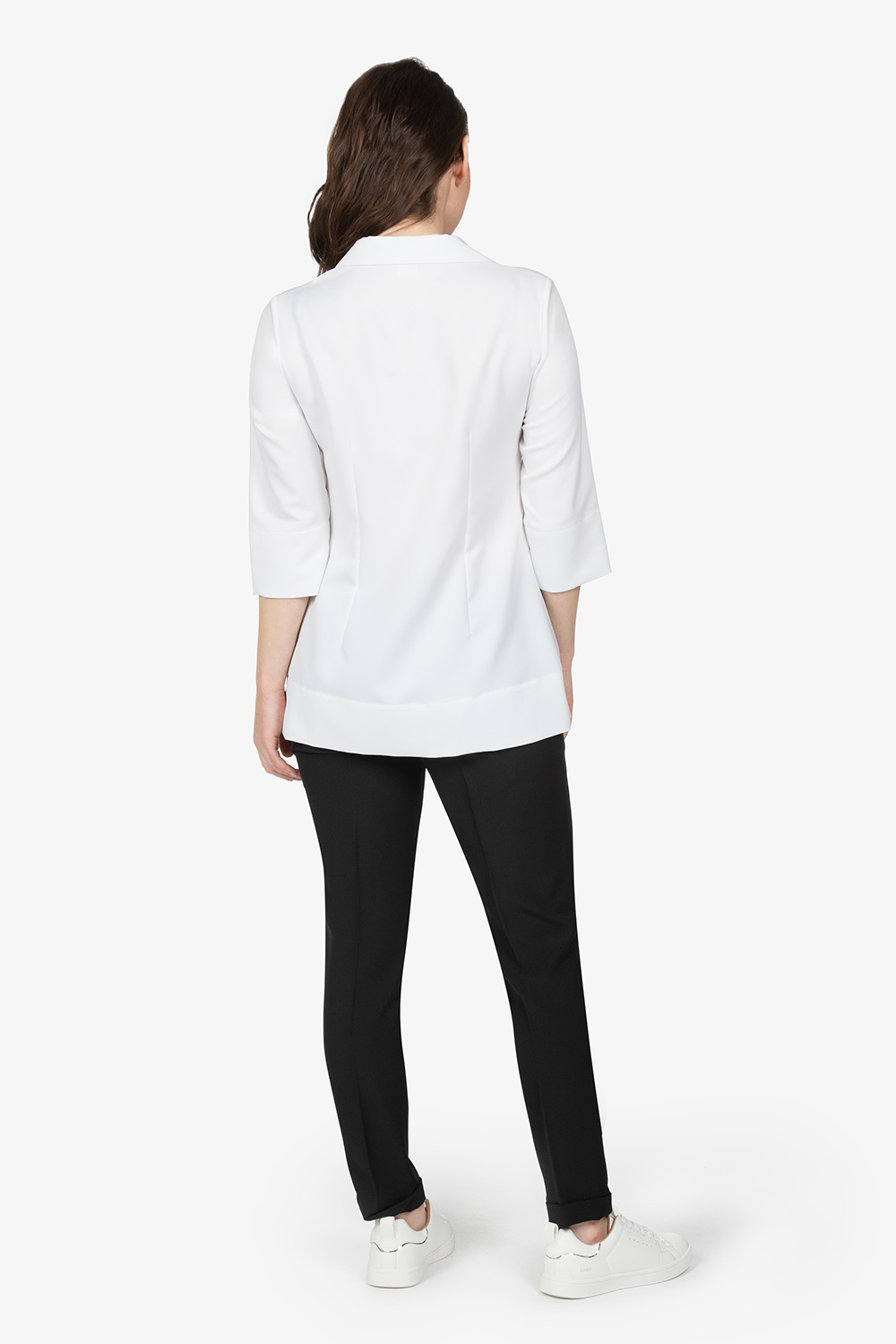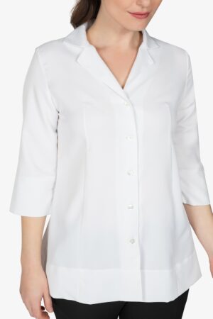 Camicia bianca con collo rever. Manica a 3/4. Pinces. Vestibilità regular.