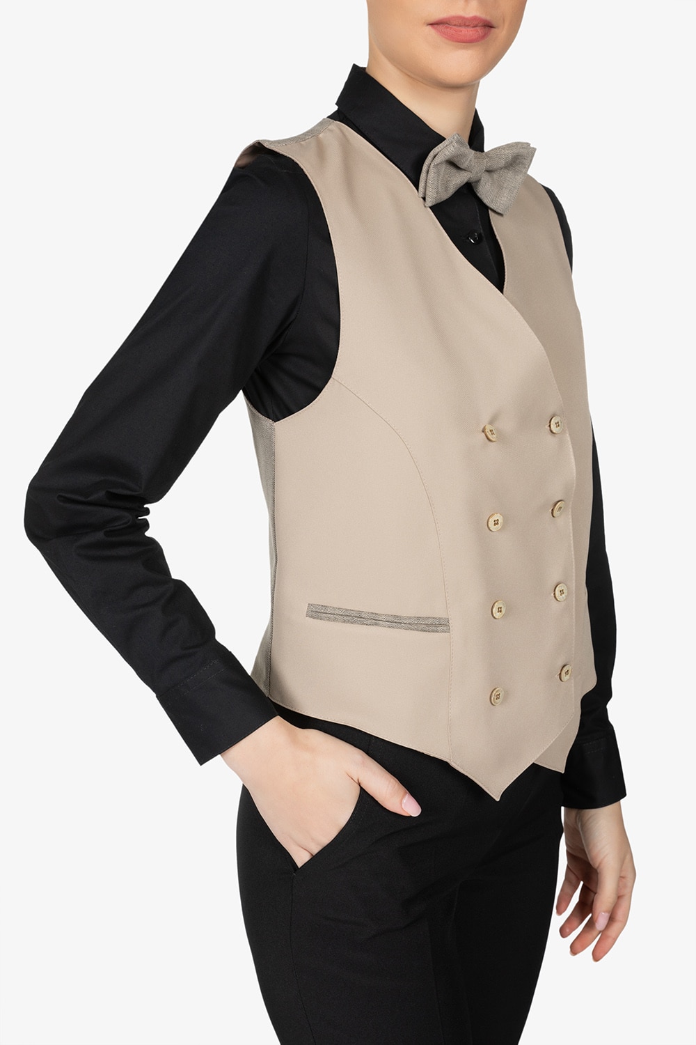 *Abbinamento suggerito con NABUCCO e OTELLO, i gilet doppio petto in versione uomo, per un look coordinato e professionale.