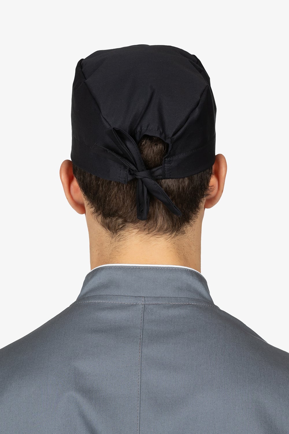 Bandana nera con laccetti regolabili.