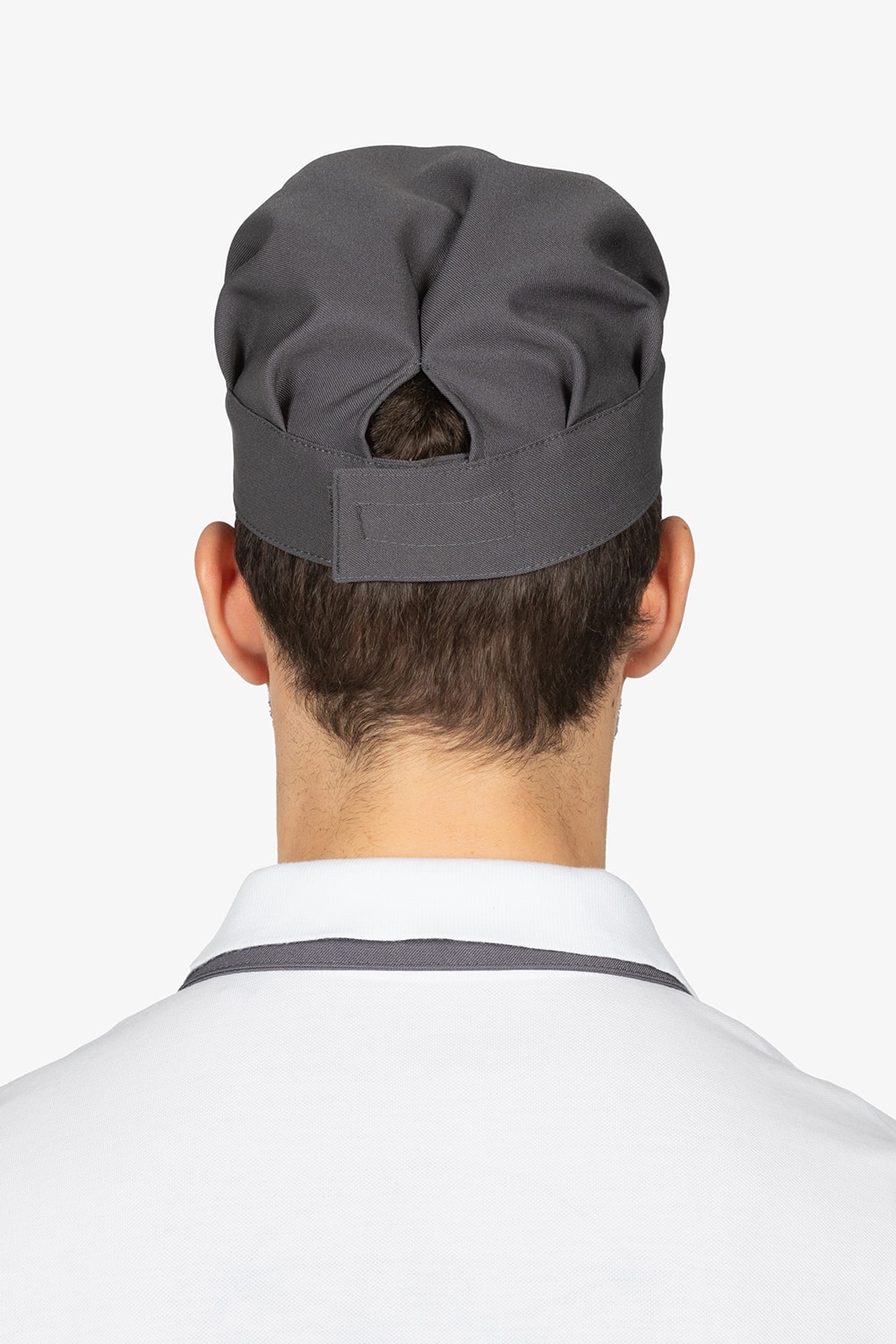 Berretto grigio con chiusura posteriore regolabile con velcro. Visiera semi-rigida.