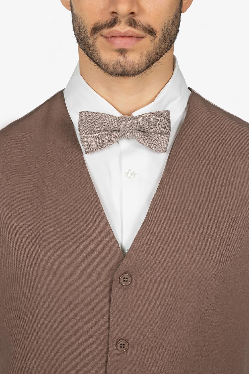 Papillon in melange tortora, già composto. Fibbia scorrevole regolabile.