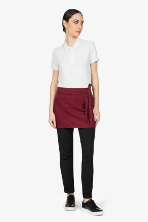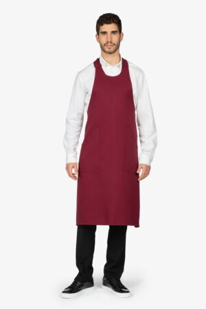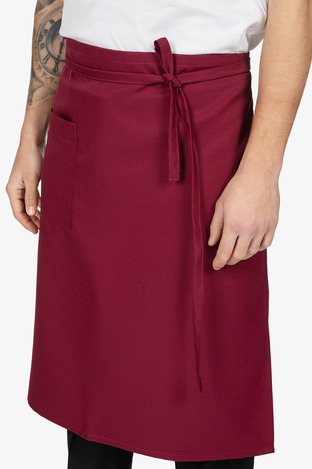 Altezza: 70cm – Larghezza: 70cm. Grembiule a vita, bordeaux. Una tasca laterale.