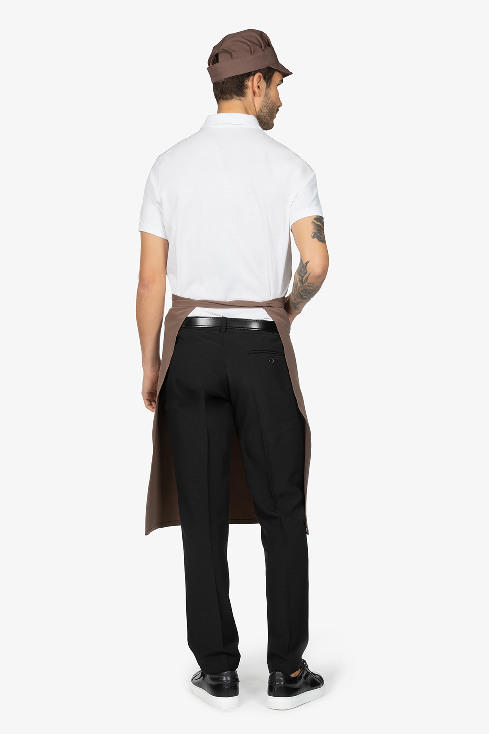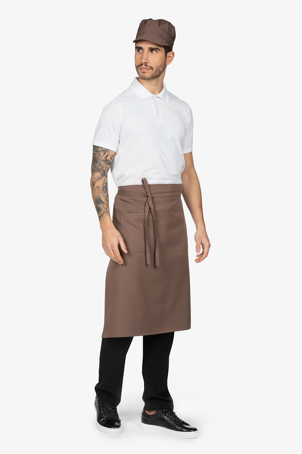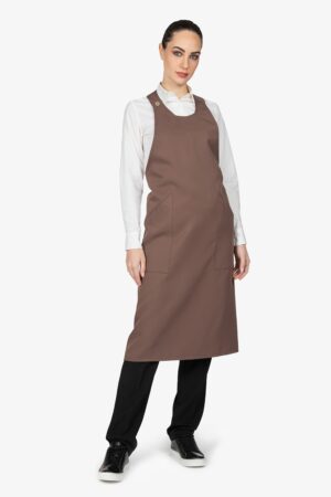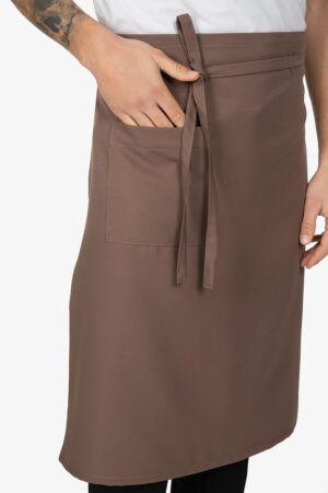 Altezza: 70cm – Larghezza: 70cm. Grembiule a vita, tortora. Una tasca laterale.