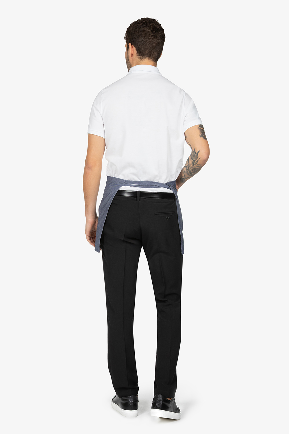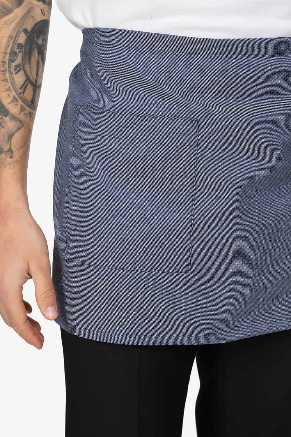 Altezza: 40cm – Larghezza: 70cm. Grembiule a vita, effetto “blu jeans”. Una tasca lato destro.