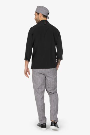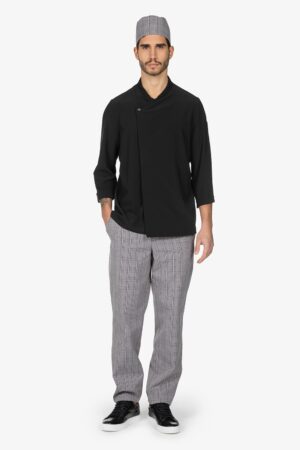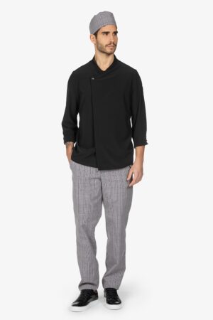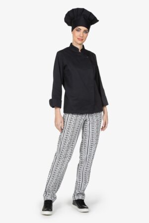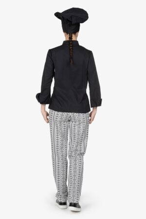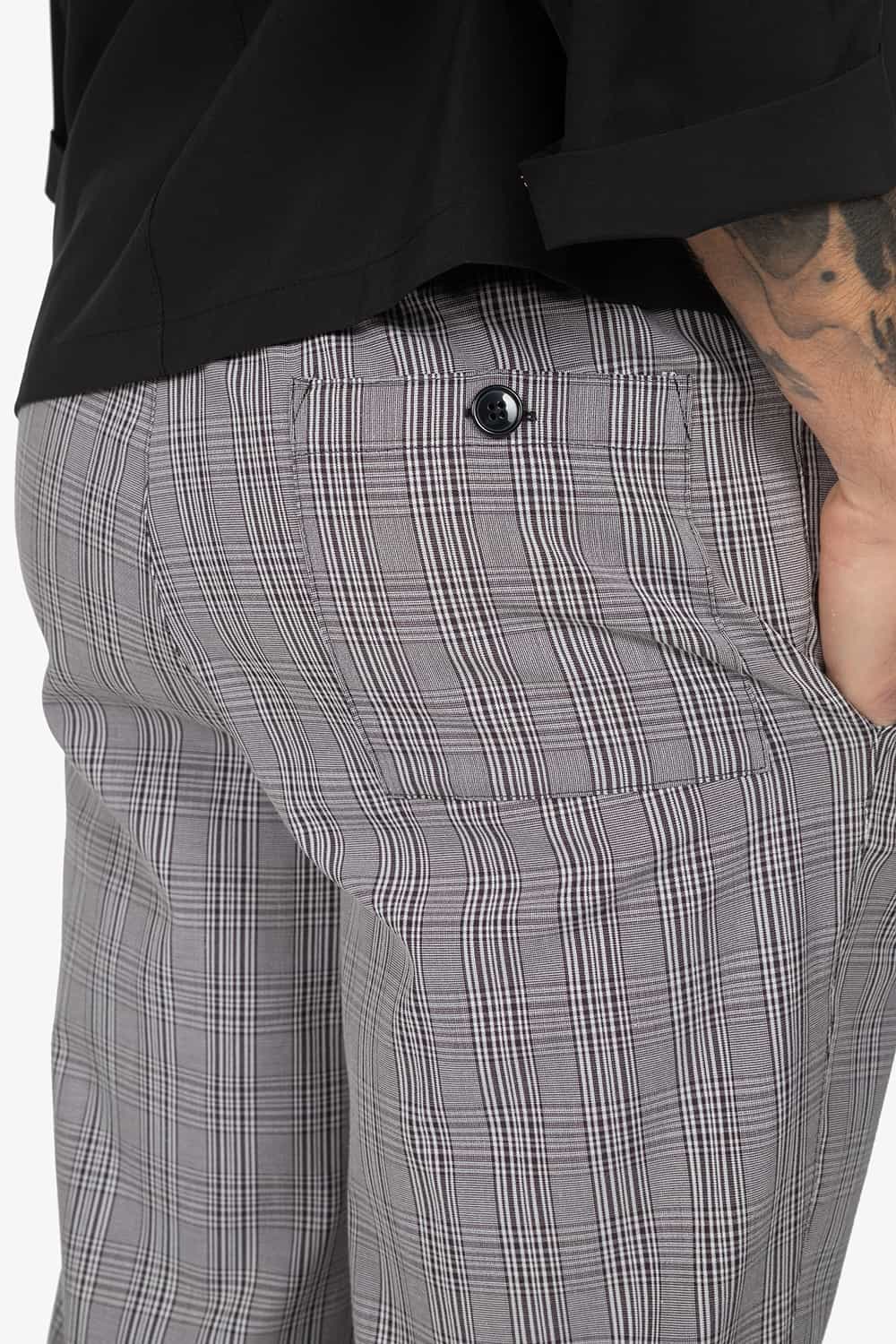 Pantalone con vita elasticizzata, in fantasia. Chiusura con bottone e zip. Due tasche laterali alla carrettiera e una tasca a toppa sul retro con abbottonatura. Vestibilità regular, con gamba dritta.