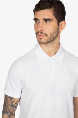 Polo bianca con colletto a vela. Mezza manica. Chiusura con 2 bottoni. Vestibilità regular.