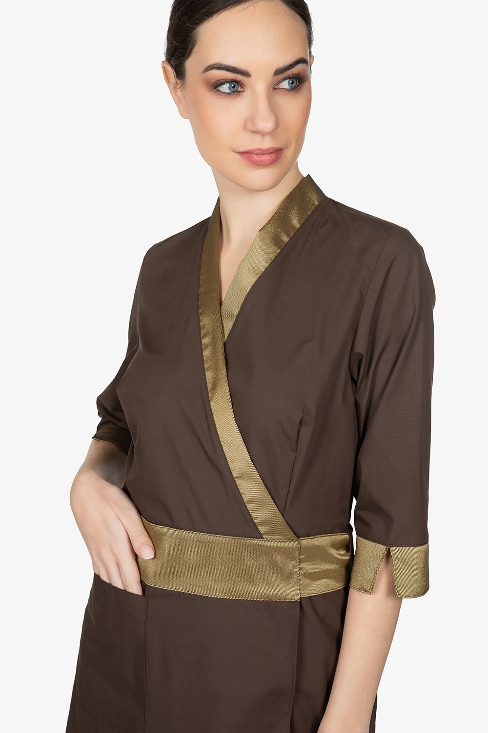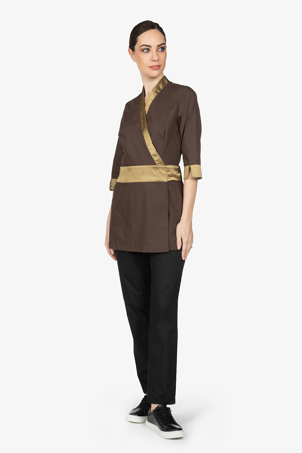 Il kimono CAMELIA unisce linee fluide e taglio strutturato, creando un equilibrio perfetto tra femminilità e potenza. Il design valorizza la silhouette con naturalezza, mentre i dettagli donano personalità e presenza scenica. Ideale per professioniste del beauty e del wellness che vogliono un look sofisticato, audace e pieno di carattere. Proposto in 3 varianti cromatiche.