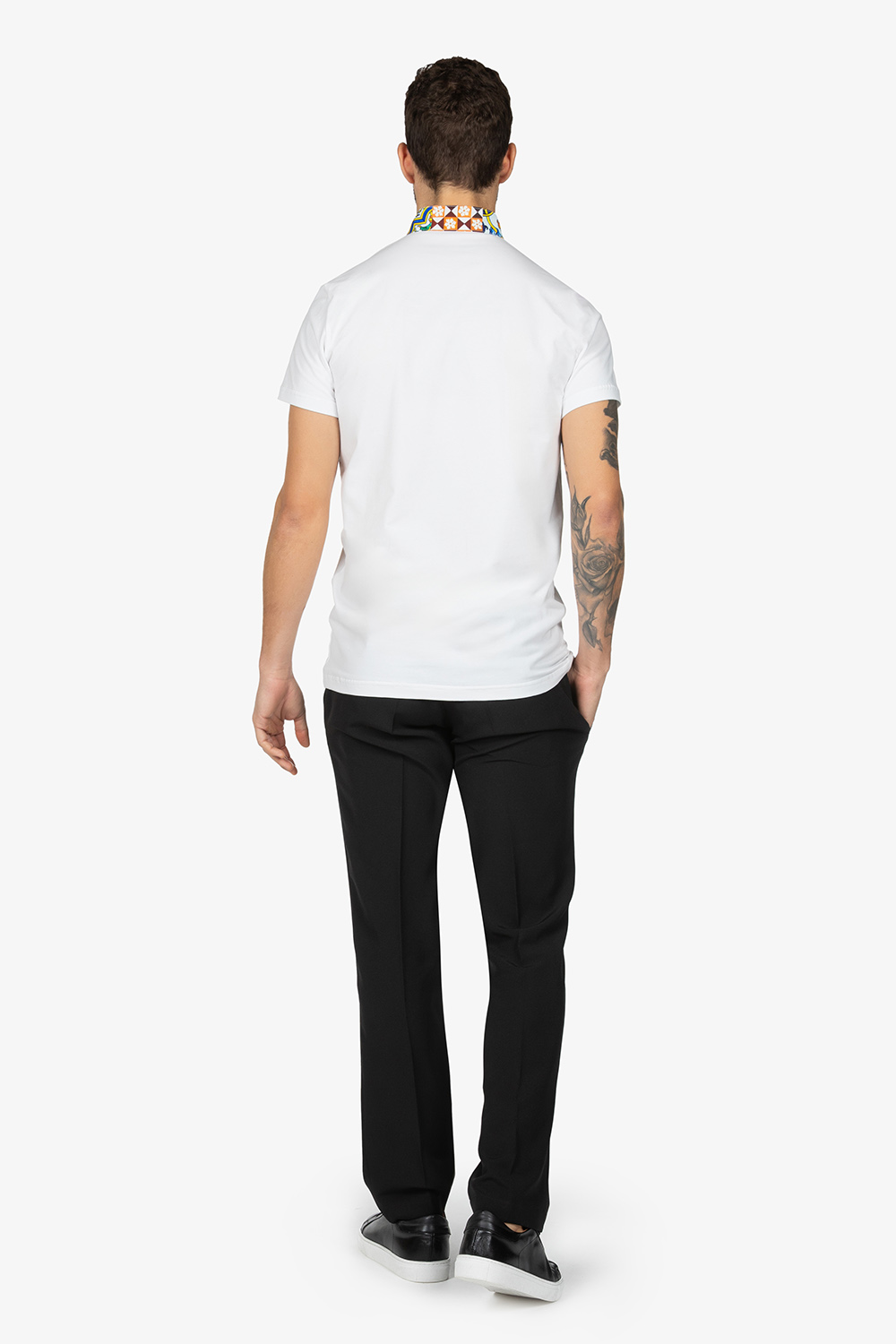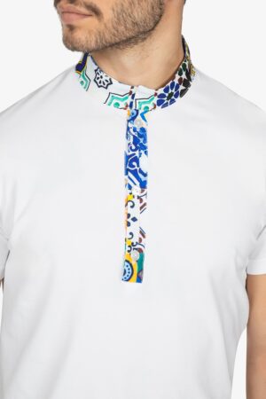 Polo con colletto alla coreana in contrasto. Mezza manica. Chiusura con 3 bottoni. Vestibilità regular.